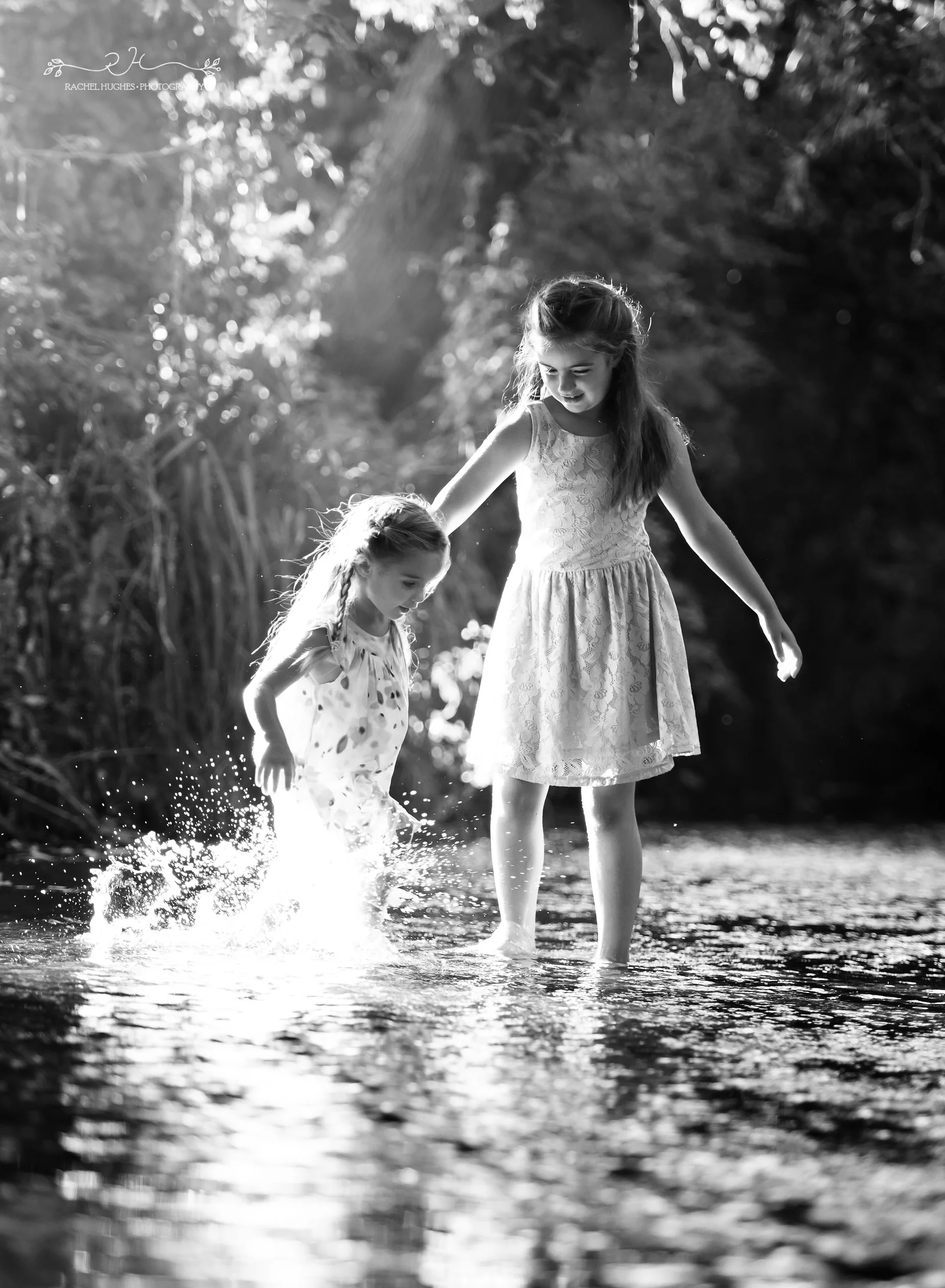 Louise, Scott, and their daughters - Isabella and Amelia - were blessed with a warm summer’s evening for their photoshoot. The girls had beautiful braids in their hair and outfit changes, and I had asked them to bring little fishing nets for the river if they had them. Louise and Scott had also brought along the girls’ favourite tunes to dance to from The Greatest Showman, to play during some parts of the session. They let me know that the girls loved fairies (we looked for them in the trees), bubbles (we caught lots) and dancing (which we did barefoot in the river!). Louise was a little worried that the girls might be shy in front of the camera - certainly little Amelia was at first and didn’t want her picture taken - but after we cracked out some tunes from The Greatest Showman and encouraged them to splash in the river, the camera was soon forgotten and we had a fab time!